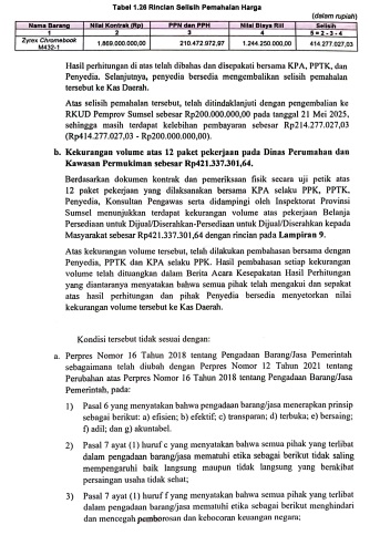 Hasil perhitungan tersebut telah dibahas dan disepakati bersama KPA, PPTK, dan penyedia CV. SAS. Selajutnya penyedia bersedia mengembalikan selisih pemahalan tersebut ke Kas Daerah dan telah dikembalikan ke RKUD Pemprov Sumsel sebesar Rp 200.000.000,- pada tanggal 21 Mei 2025 lalu sehingga masih terdapat kelebihan pembayaran sebesar Rp 214.277.027,03.