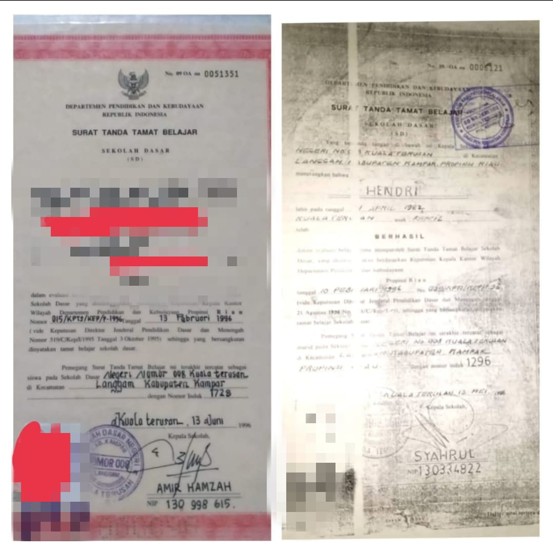 Dugaan penggunaan Ipal oleh Hendri, dan dari penelusuran wartawan Detektif Swasta, awak media mendapatkan informasi dari salah satu guru ( Wmn) yang pernah mengajar di SDN 008 yang menulis langsung ijazah siswa pada saat itu. Dari keterangan sumber tersebut, sumber menyangkal kalau itu tulisan tangannya (ketika wartawan menyodorkan hasil print ijazah Hendri). “Saya yang menulis nama dalam ijazah, saya kalau menulis ijazah itu pakai penggaris, jadi itu bukan tulisan tangan saya”, ucap Wmn saat dimintai keterangannya, disalah satu warung kopi yang ada di pangkalan kerinci, Senin 04/04-2022, sekitar pukul 21.10 WIB.