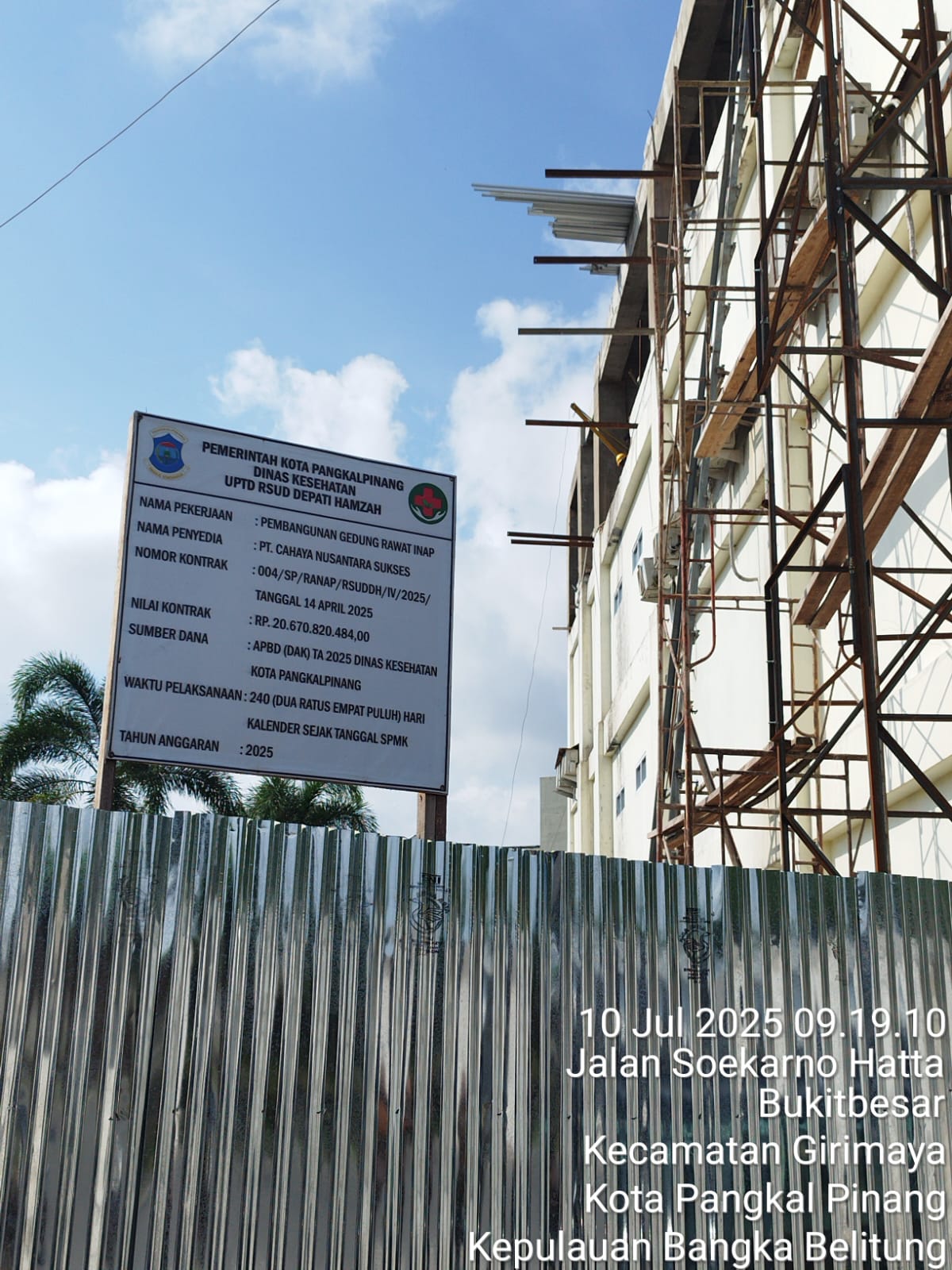 Penyimpangan diduga juga terjadi pada pelaksanaan tender Belanja Modal Bangunan Kesehatan (Pembangunan Gedung Rawat Inap) Kode Tender 10014775000, Kode RUP 553964475, sumber dana APBD tahun 2025, nilai Pagu Rp 20.767.300.000,-, nilai HPS Rp 20.767.294.913,-, Pemenang PT. Cahaya Nusantara Sukses (Palembang), harga penawaran/penawaran terkoreksi Rp 20.693.220.484,04, harga negosiasi Rp 20.670.820.484,03.