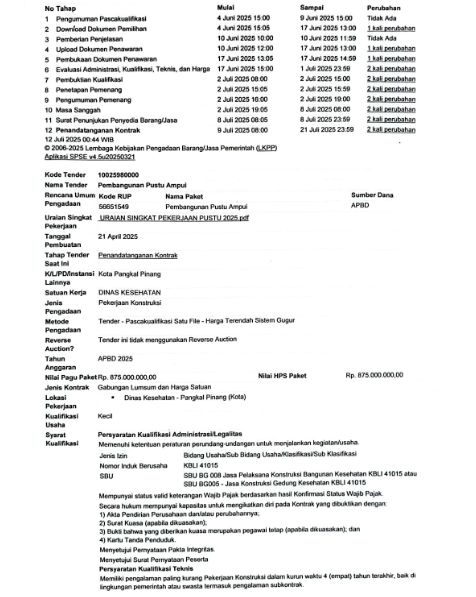 TENDER 4 PAKET PEMBANGUNAN PUSTU LANGGAR SE LKPP NO. 1 TAHUN 2025