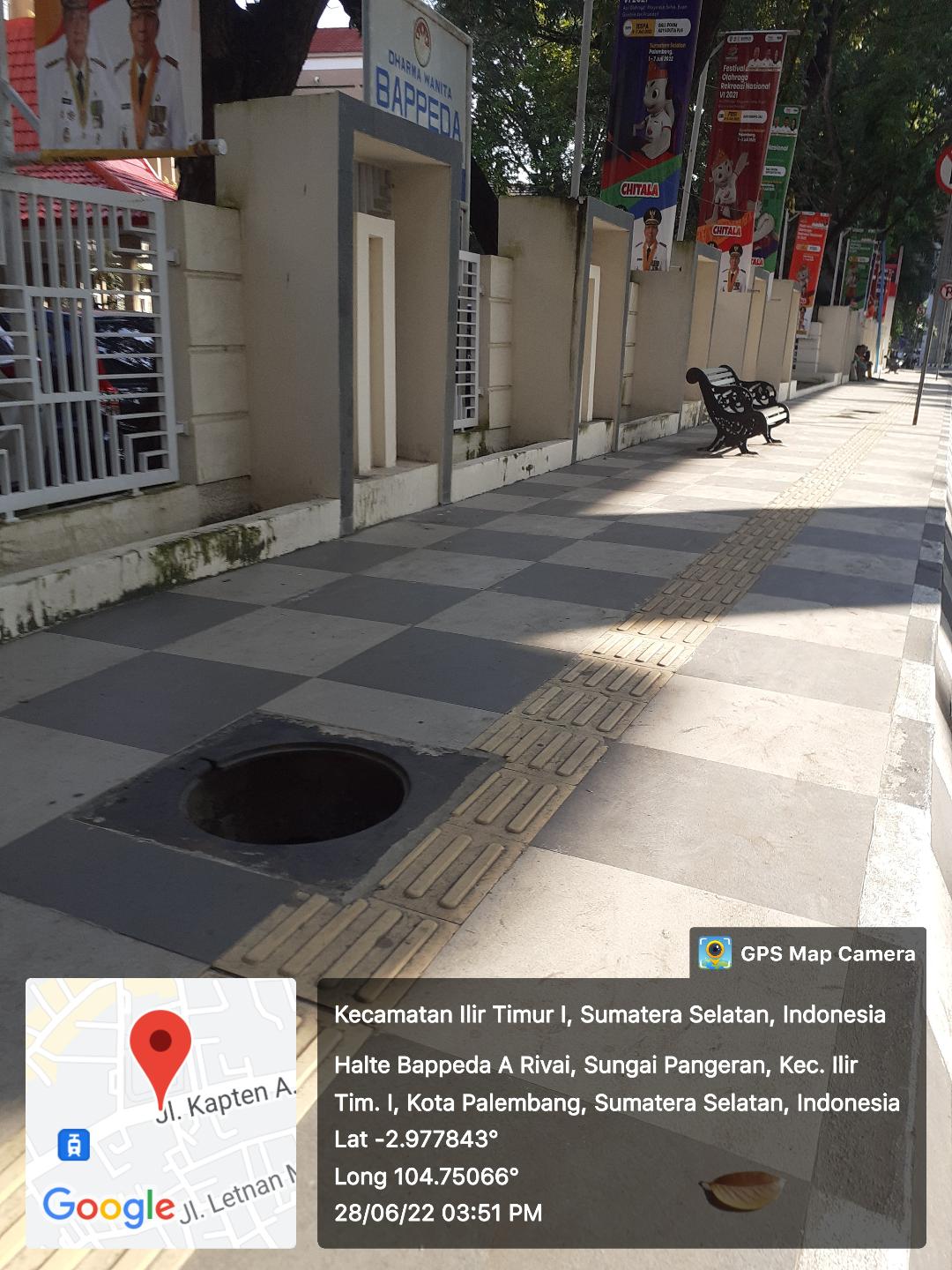 Sedangkan Trotoar di Jl. Jaksa Agung R. Suprapto merupakan dari pekerjaan Pemeliharaan Berkala Jalan Jaksa Agung R. Suprapto Palembang, sumber dana APBD 2021, pelaksana PT. Andika Sejahtera, nilai kontrak Rp 2.878.396.277,51