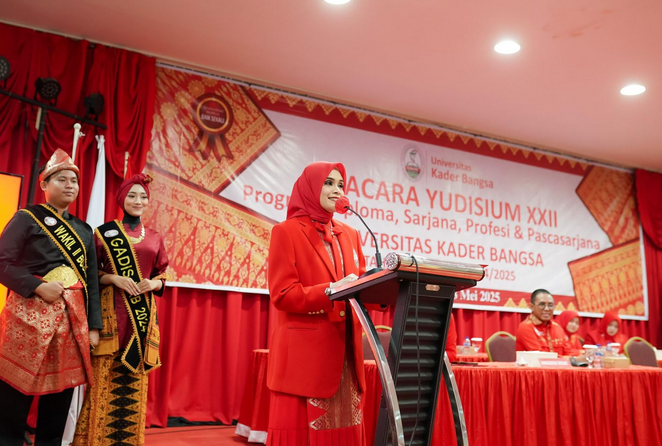 Rektor UKB, Dr. dr. Fika Minata Wathan, M.Kes saat menyampaikan sambutan saat yudisium Mei 2025/ist