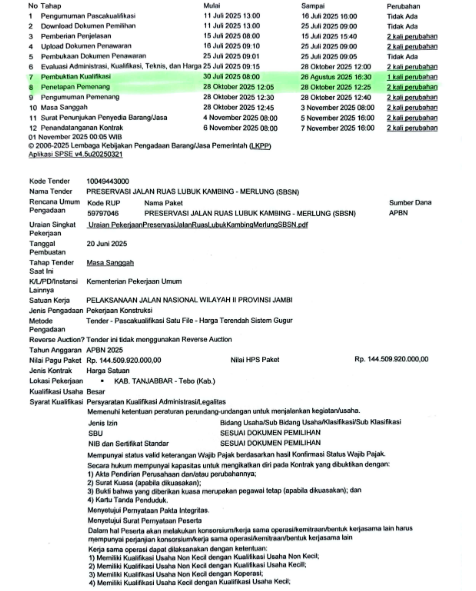 - Pembuktian Kualifikasi : Mulai 30 Juli 2025 Sampai 26 Agustus 2025 (1 kali perubahan)